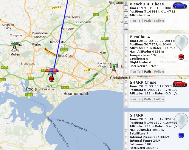 Launch 1: (~midday): Joey (50 baud RTTY on 433.975MHz) and Squirrel (Nexus One Smartphone on 434.650MHz transmitting 50 baud RTTY and SSTV).
